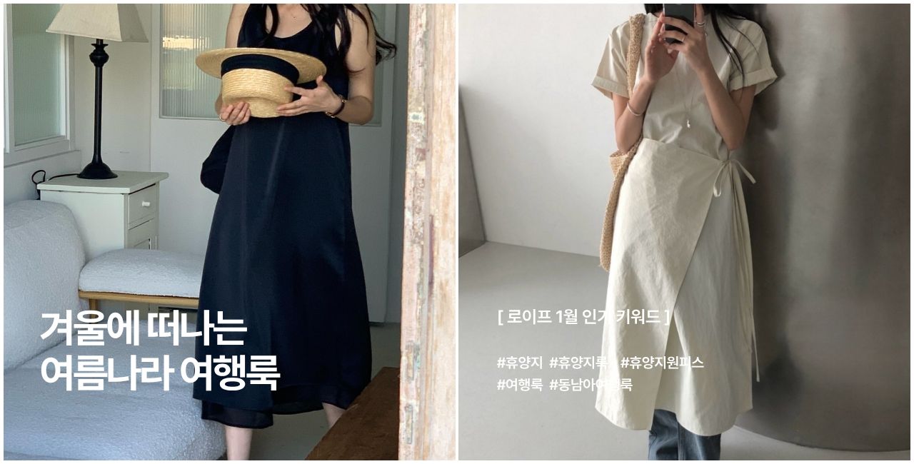 [ 👩🏻💻 로이프 1월 인기 키워드 ] : 최근 #휴양지 관련 키워드를 통해 로이프를 방문해주시는 고객님들이 증가하고 있어요. 반팔 원피스, 살안타템(얇은 긴팔 셔츠와 가디건), 민소매 나시 등 여름 아이템에 많은 관심과 사랑을 주셔서 감사드립니다 :)