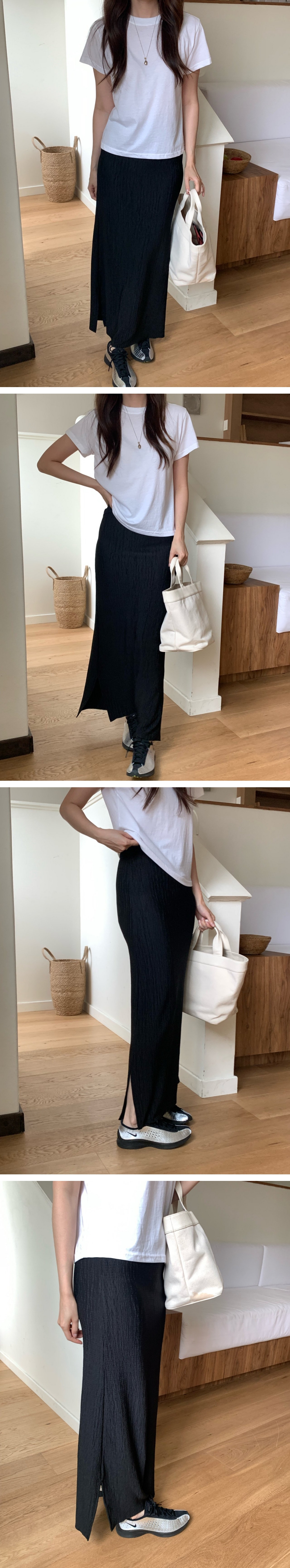 맥시한 기장의 플리츠 밴딩