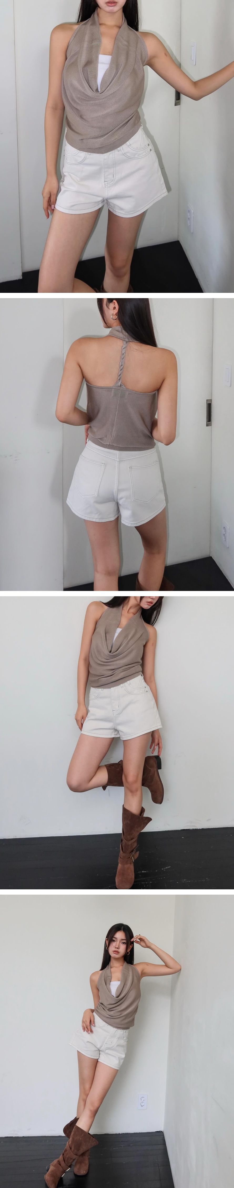착용하실 수 있는 홀터넥 니트탑입니다.