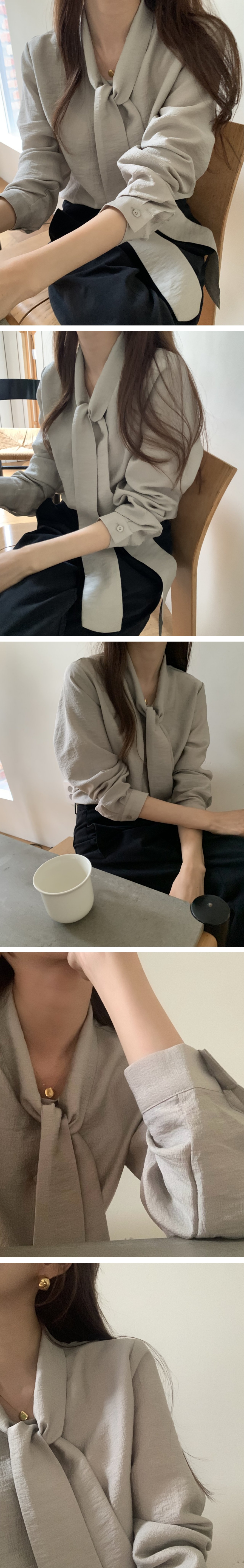 롱 타이 블라우스를 소개해드려요.